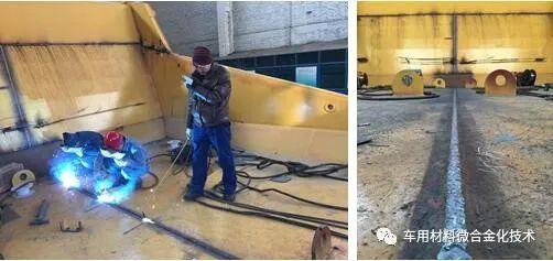 图 8 矿车耐磨钢对接接头焊接操作和焊缝