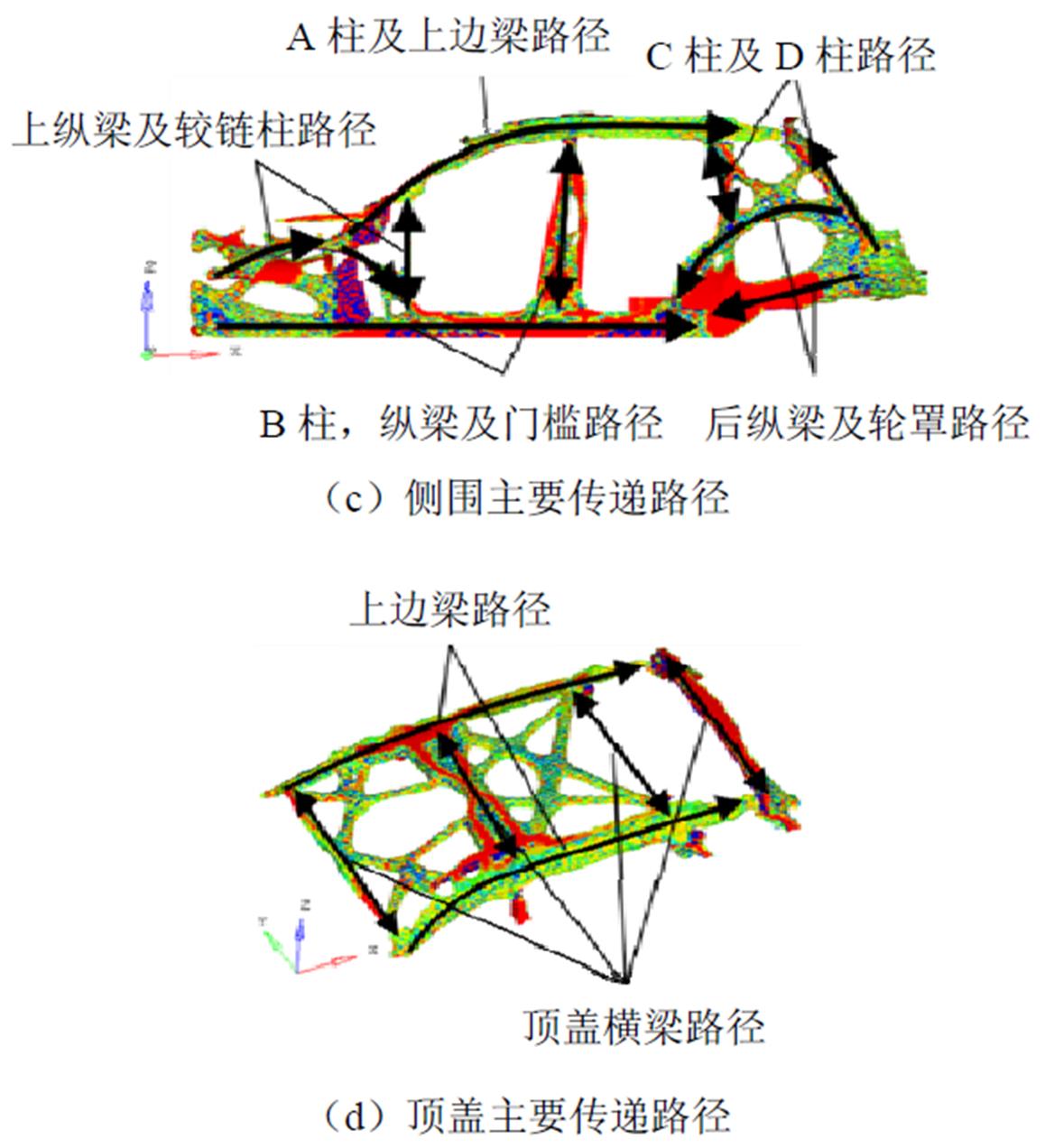 经迭代计算后,获得的白车身载荷传递路径如图2所示。
