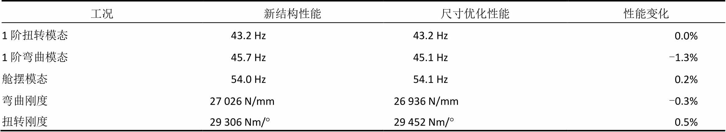 表6 尺寸优化后的白车身性能