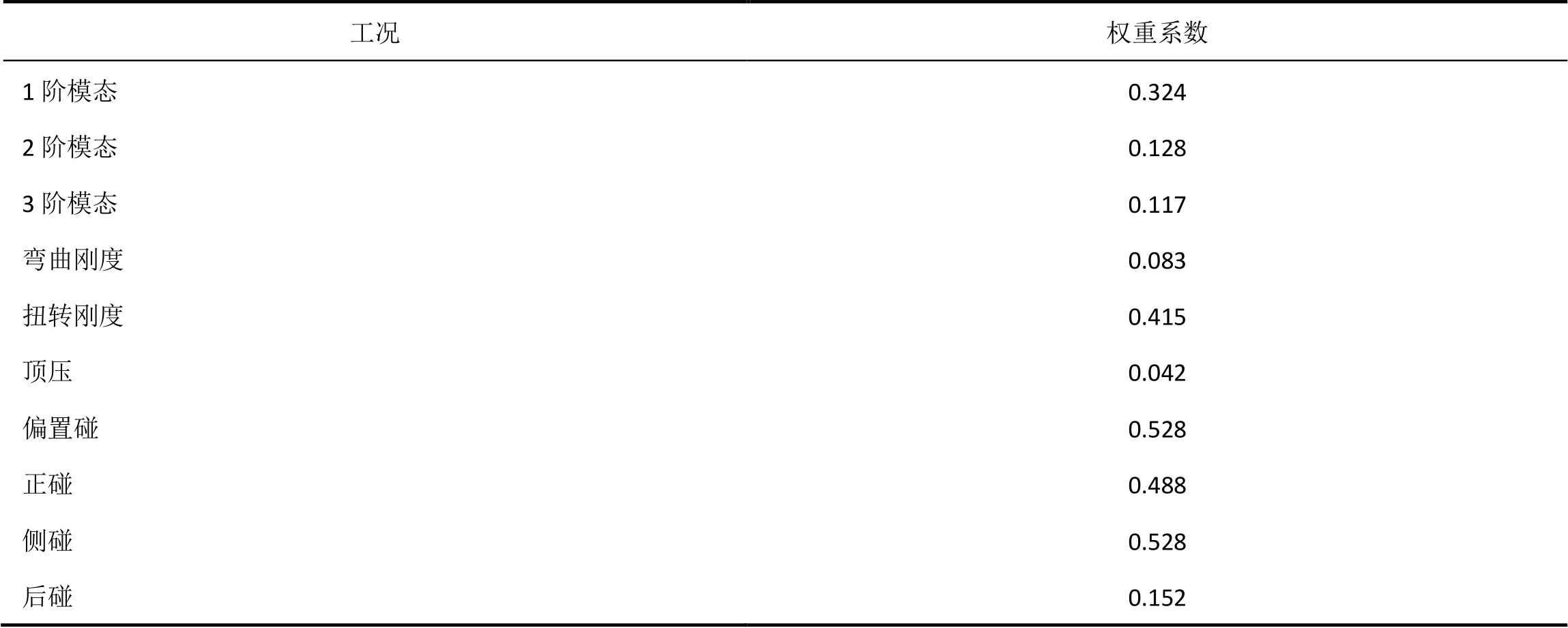 表1 各工况下的权重系数