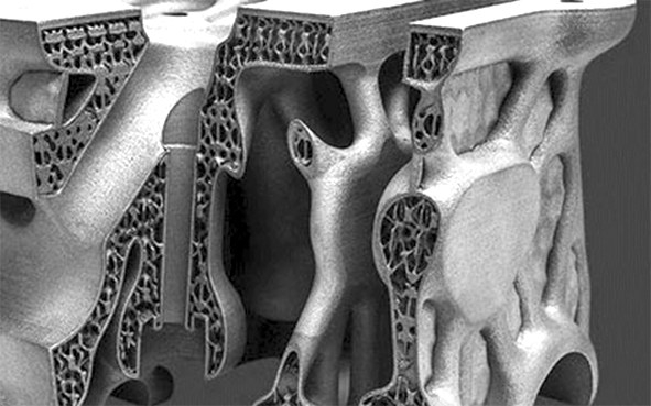 美国加利福尼亚州的FIT公司通过选择性激光熔化3D打印技术制造充满点阵结构的仿生发动机气缸盖(图1),该气缸盖质量减少了66%,表面面积从823 cm2增加到6 052 cm2,显著提高了气缸盖的冷却性能,从而改善了赛车的发动机性能[1]。