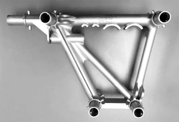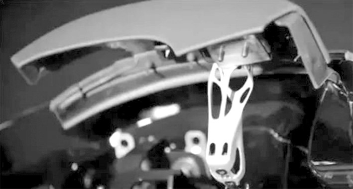 宝马量产的i8 Roadster敞篷跑车装上了3D打印的车顶支架(图5),这个件比常规工艺制造的车顶支架质量轻44%,刚度增加,实现软顶快速升高和降低,并以锯齿形配置折叠和展开的功能。