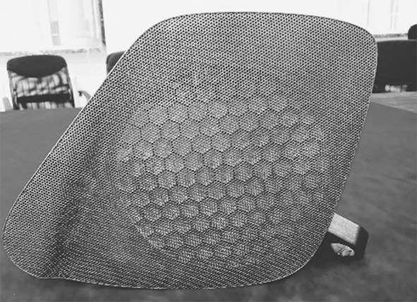 国内主机厂也开始尝试通过3D打印制造汽车功能零件,图3展示了采用选择性激光熔化3D打印技术制造的铝合金汽车轮毂,中间选用1.5 mm×6 mm晶胞点阵结构,与同尺寸的传统铸铝车轮相比,降重13%。