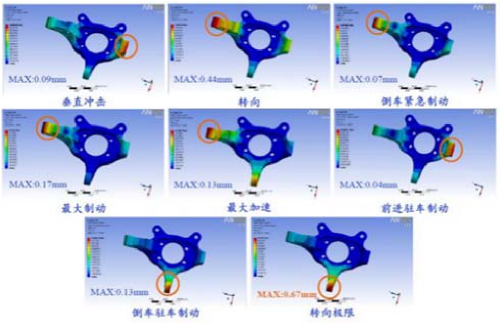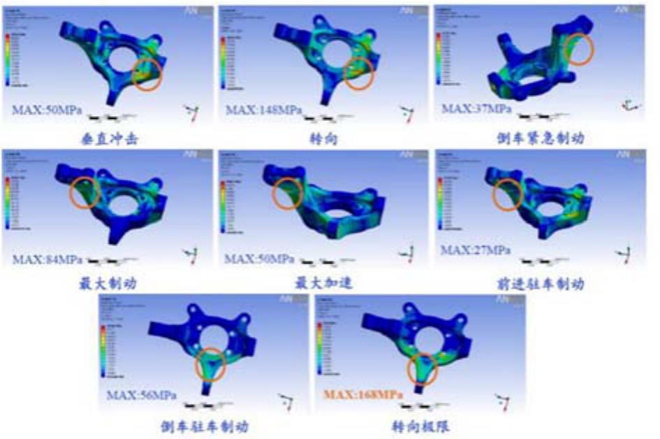 由于铝合金材质本身性能的劣势,转向节以铝代钢的改进仅是替换材料显然是不行的,即便是使用当前最佳的挤压铸造工艺,也需对产品的机构进行优化设计,并需结合产品的性能、工况等条件进行优化分析。