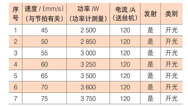 1.激光钎焊参数的选择提高激光焊的作业质量,其焊接参数的选择非常重要。焊接参数包括焊接速度、激光功率、能量密度、送丝速度及送丝电流等。 焊接速度取决于能量密度,能量密度越大,焊接速度越快,焊接功率与送丝速度保持约为1:1,速度为42~75 mm/min。激光钎焊为热丝焊,电流保持在120 A左右。根据焊缝间隙大小、焊丝的直径等影响因素进行实际调整。现场调试的一组激光钎焊指导工艺参数见表1。