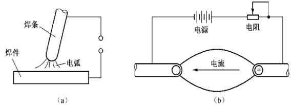 2.1 手工电弧焊手工电弧焊由电源、电缆、焊钳、焊条、焊件组成,是利用焊接电源在焊条和焊件之间的电弧热使金属和母材熔化形成焊缝的一种焊接方法。其示意图如图1: