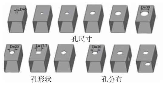 图4 车身前部理想的碰撞特性曲线 很多学者在复合材料薄壁件的基础上提出了诱变原则,并通过数值模拟和实验的方法分析了诱导孔对吸能特性的改善情况。例如E. G. Guynn 和Bradley[12]通过细观力学去解释损伤破坏,结果表明开孔复合材料层合板的压缩破坏是从边缘开始的通过局部屈曲/剪切破坏,使力稳定传播直到达到临界大小。C. Soutis 等[13]对其失效特性进行了实验研究,发现孔附近的应力集中降低了穿孔层合板的临界压缩强度。在此基础上,对复合材料的诱导研究逐渐趋于工程实际。S. R. Hallett 等[14]研究了圆形孔尺寸对复合穿孔管的影响,他们发现由于孔径的尺寸,层压板的厚度,纤维层数的不同,失效应力和损伤机制存在较大差异,吸能效果也各不相同。Fathollah[15],Wang Weiqiang 等[16]对纤维增强复合材料管做了轴向压缩试验,他们发现多孔管的失稳模式与完整管相似,但多孔管的临界载荷和刚度却大大降低了。Liu Qiang等[17]又从穿孔复合管的孔径尺寸,孔的形状和孔的分布三方面对其承载能力和吸能特性进行了研究。如图5 所示。孔的大小对峰值载荷无明显影响;随着孔形状的不同,Fmax和SEA 在一定程度上也发生微小变化,但是带有圆孔管件的SEA 小于带有方形和菱形孔的SEA;单面、相邻面和相对面三种不同的分布方式,峰值力几乎保持恒定,比吸能仅与孔的数量有关与孔的分布无关。