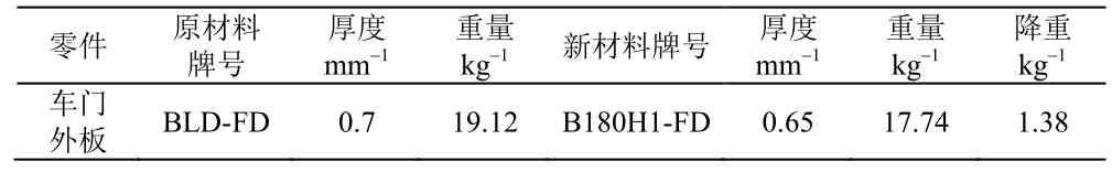 表5 车门轻量化效果