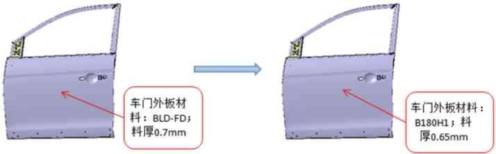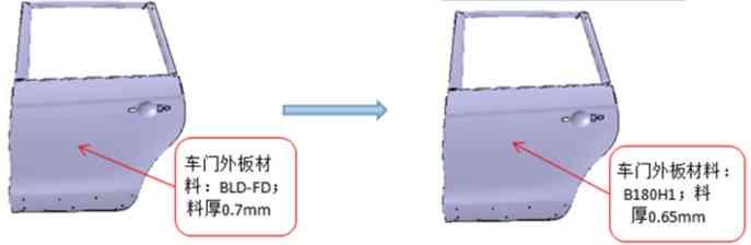 为确保轻量化方案可行,优先在车门上进行了改善验证和应用分析。验证可行后,再推广到其他外覆盖零件上,如翼子板、背门外板、发盖外板等。