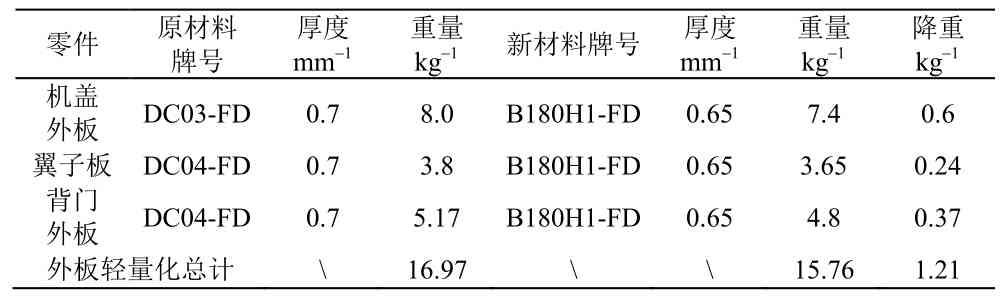 表6 其他覆盖件轻量化效果
