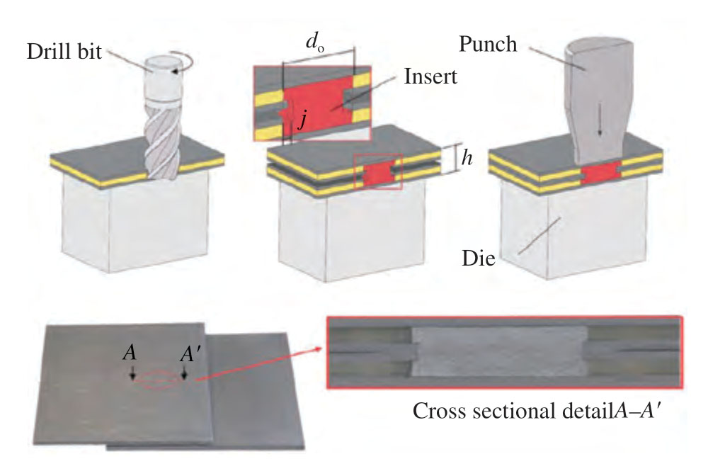 图4 孔铆连接工艺原理及连接件截面