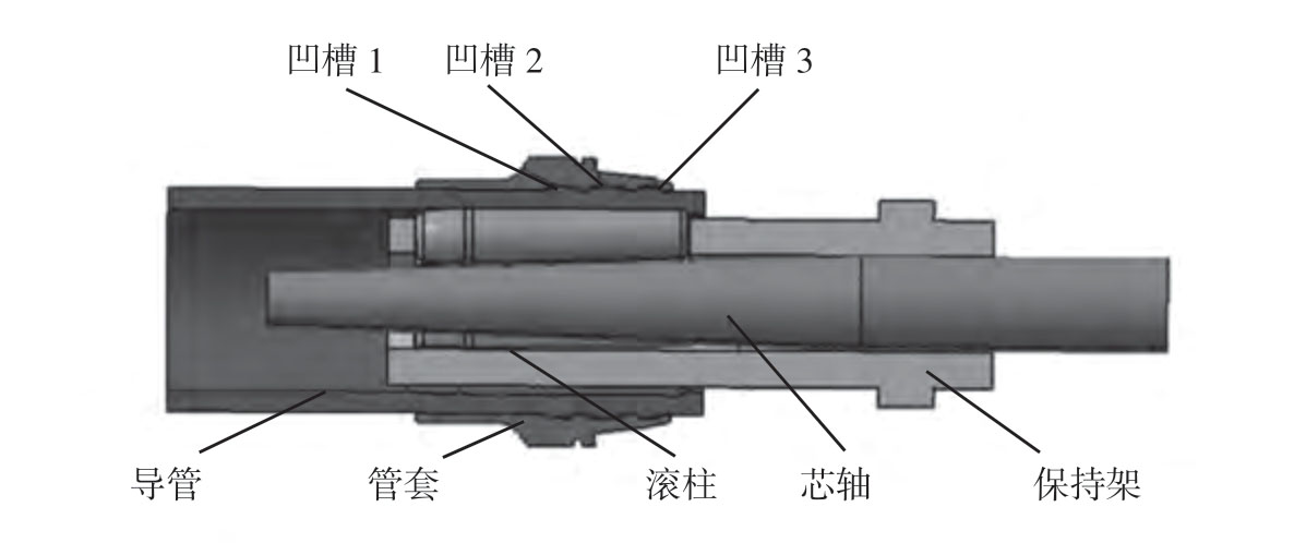 管路系统被喻为飞机的血管,航空导管的连接性能对于管路系统的安全性和可靠性有着重要影响。张荣霞等[54–55]针对基于扭矩控制的导管内径滚压连接工艺进行了研究,该方法的工作原理如图18所示,芯轴主动转动,滚柱带动保持架轴向转动,依靠芯轴与滚柱间的径向挤压力和切向摩擦力,迫使导管材料进入管套凹槽,完成连接过程,研究了成形机理及特点,分析了成形扭矩与连接件管端伸出量和连接件内径的关系,并成功制备了TA18 钛合金导管连接件,装配面的密接度满足设计要求。张凌云等[56]采用聚氨酯橡胶挤压实现航空液压导管接头的连接,采用有限元分析方法研究了胀形压力、聚氨酯橡胶套厚度与长度、导管与管套的间隙等工艺参数对于连接质量的影响,并采用优化参数获得了连接质量良好的导管接头,对实际生产起到了重要的指导作用。