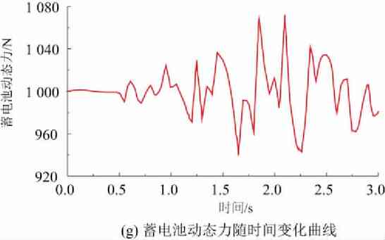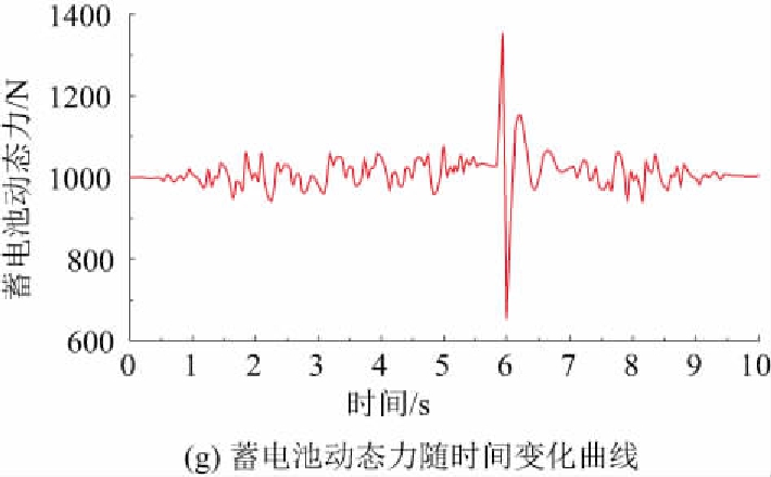 2) 扭转工况动态峰值力的提取 扭转工况(右前轮下沉)为车辆行驶最恶劣的工况。本文模拟的扭转工况是在路面设置一个长1m、宽0.5m、深0.12m的凹坑[13],客车以20km/h的速度行驶过去。仿真结束后,提取整车各载荷的动态力如图4所示。