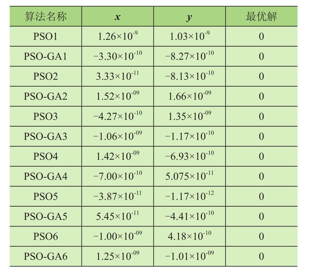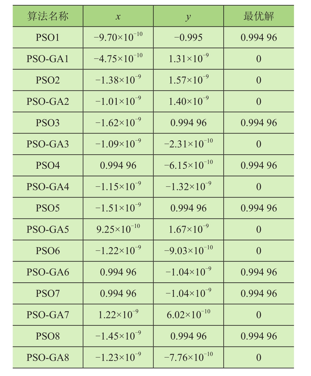 从表1中计算结果可以看出,当种群数量N设置为20时,PSO算法有2次求解到Rastrigrin函数的全局最优解;而PSO-GA算法有7次求解到Rastrigrin函数的全局最优解。 表 1 仿真实验数据