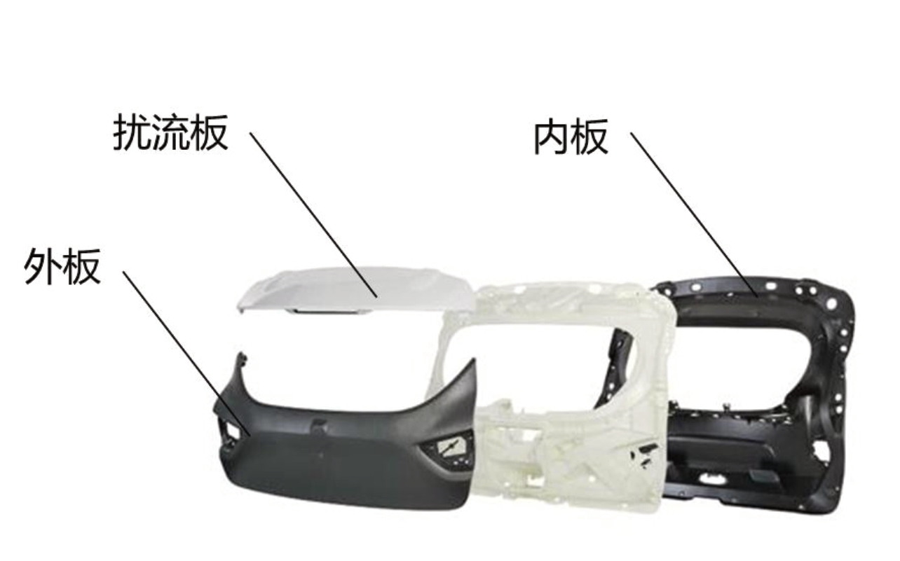 汽车后尾门部分集成了后挡风玻璃、尾门锁、尾灯、倒车灯、倒车影像摄像头、雷达传感器、后雨刮器及电机、尾门线束组件、天线、扰流板、气弹簧、缓冲块、其他装饰亮条等零部件。传统汽车尾门由数十个钣金冲压件,通过夹具装夹、点焊或激光焊接而成,结构复杂且重量较大。由高强度塑料代替钣金制作汽车后尾门既可实现轻量化,又有效降低尾门焊接误差及冲压和累计误差,还可适应尾门造型的变化,提高设计自由度,提升汽车尾部的外观质量。目前,塑料后尾门已在多款车型中应用。