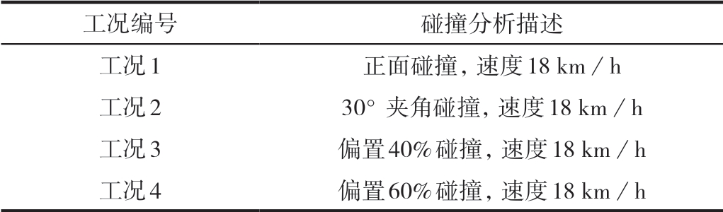 表1 保险杠低速碰撞分析工况