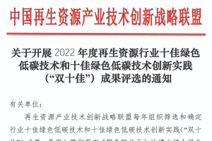【汽车碳中和】关于开展2022年度再生资源行业十佳绿色低碳技术和十佳绿色低碳技术创新实践(“双十佳”)成果评选的通知...